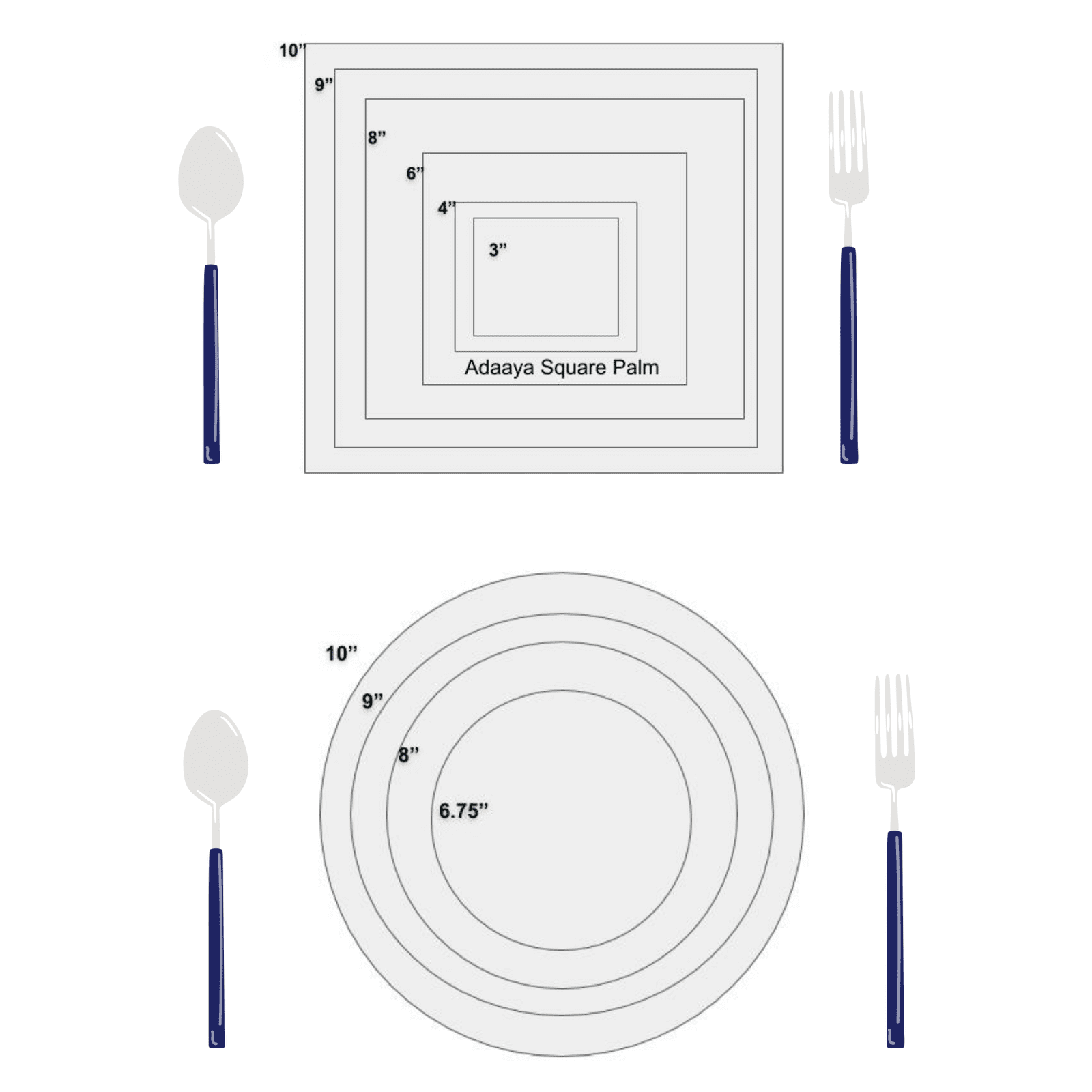Please refer our different shapes and size charts available for Palm Leaf disposables. Do write us for any queries